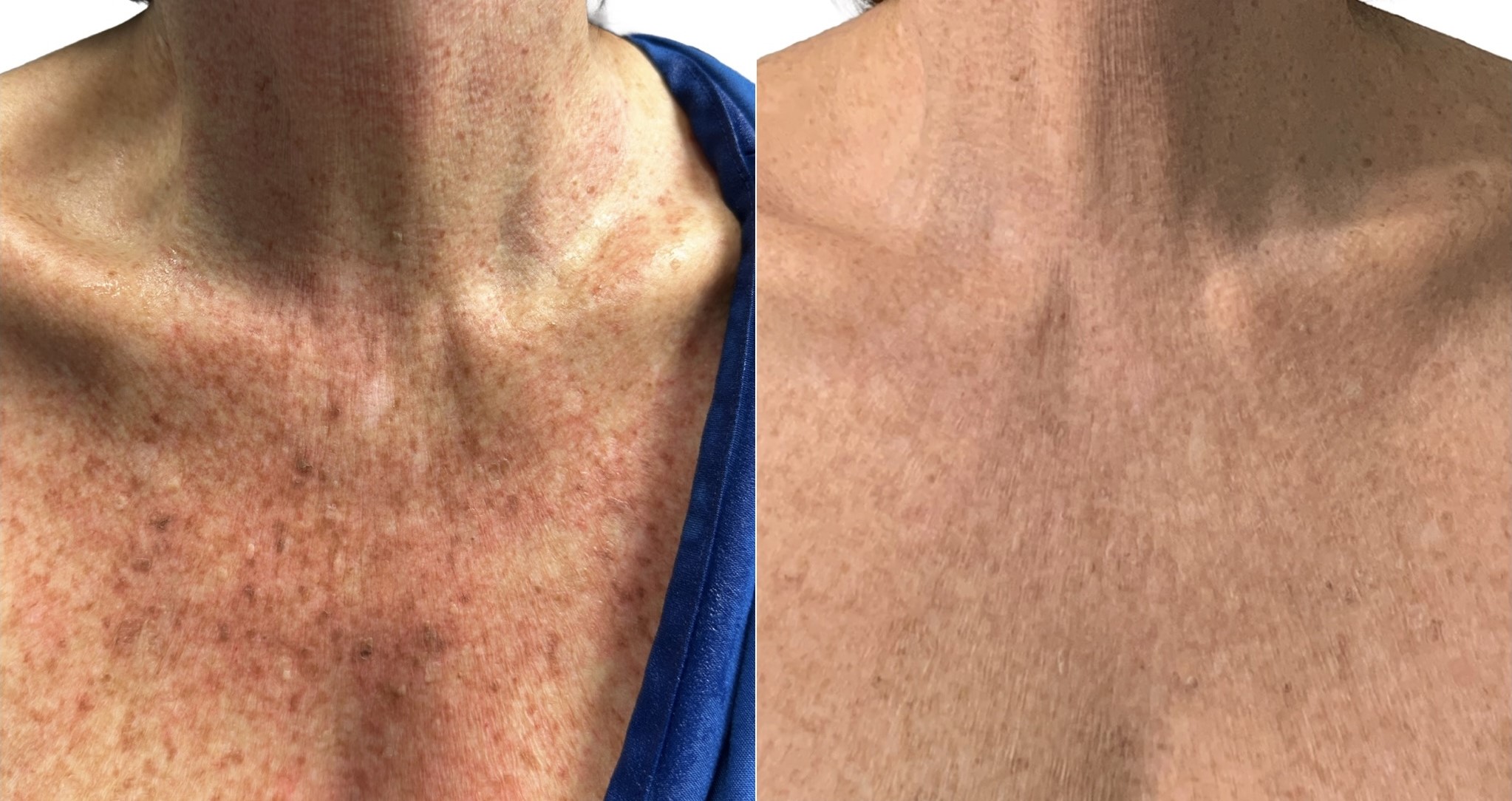 Our patient featured here wanted to improve the look of her chemo port scar after breast cancer, specifically the texture and pigmentation. Her personalized plan included: